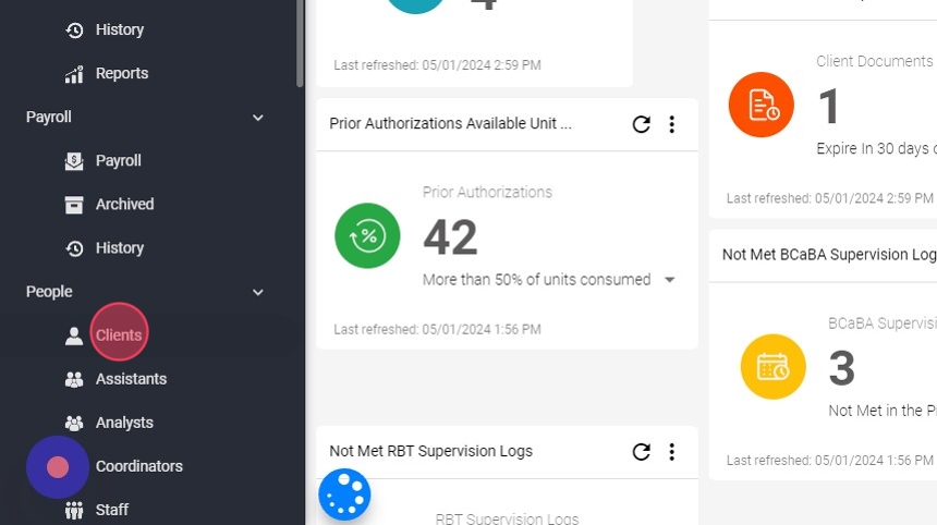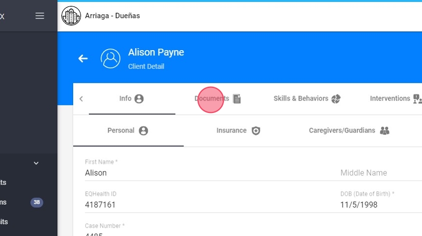 Los documentos de los clientes (por ejemplo, Evaluaciones, Reevaluaciones, etc.) se pueden archivar en la ventana de "Documentos" que se encuentra en el perfil de cada cliente. Esta herramienta te ayudará a tener control sobre todos los documentos del cliente.