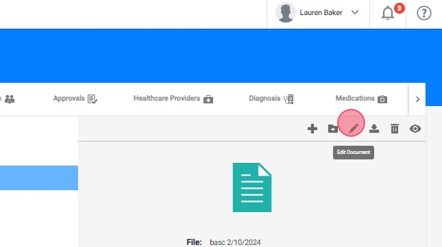 4. Nos centraremos en el símbolo de lápiz que está ubicado encima de la parte central de la pantalla donde se encuentra la información del documento; hacemos clic en él, como se muestra en la imagen.