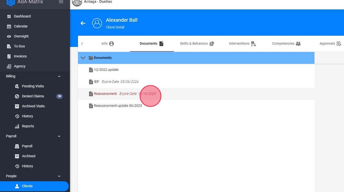 3. En la parte central de la pantalla encontrarás toda la documentación en el programa sobre el cliente; simplemente busca el documento que deseas actualizar.