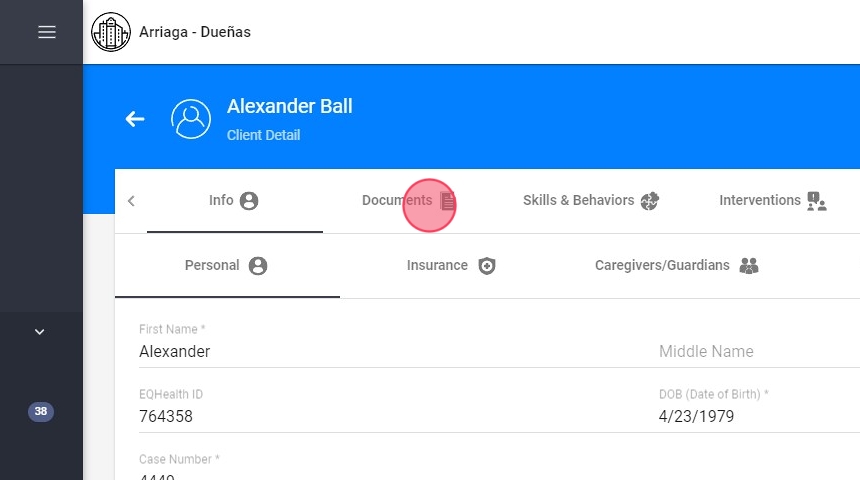 2. Después de ingresar al perfil del cliente, presiona el botón "Documentos" ubicado en la parte superior del monitor, como se muestra en la imagen.