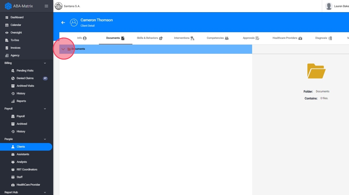 1. To add a new document to a client's Profile Folder Structure, press the "clients" button found in the navigation bar located on the left of your screen, together as shown in the image.
