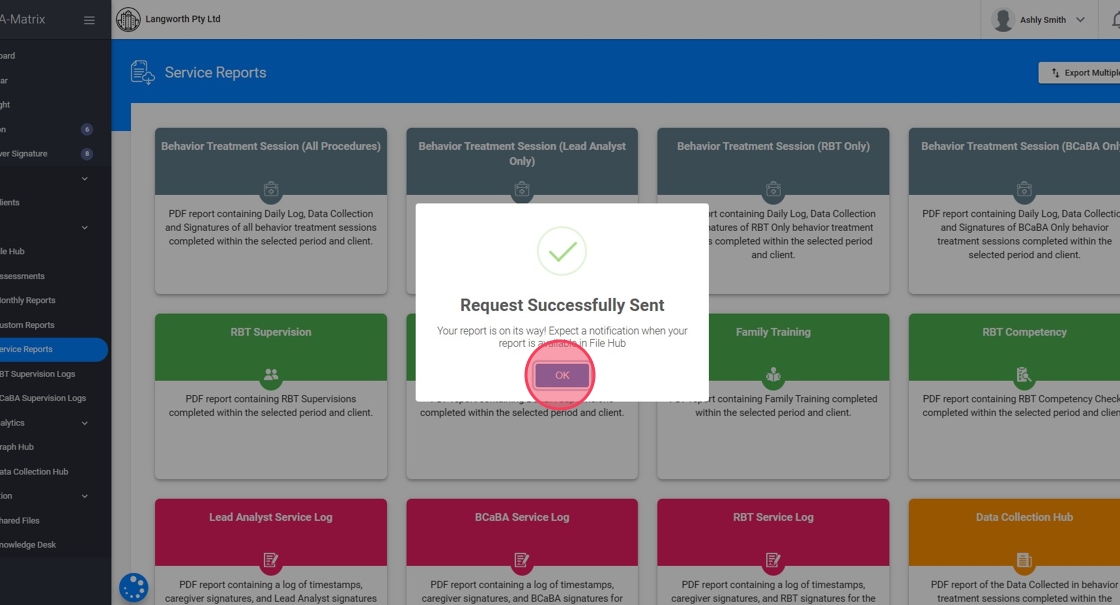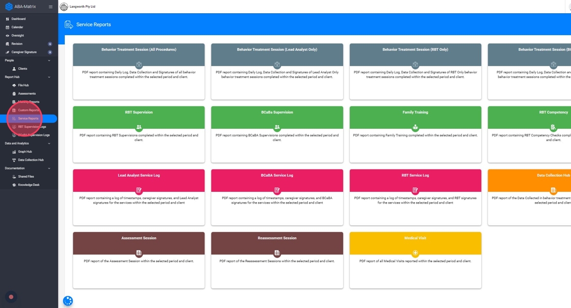 This guide explains how to generate and export reports in ABA Matrix. It provides step-by-step instructions on how to access the different types of available reports, export a single report, export multiple reports, and access the File Hub to view and download the exported reports.
