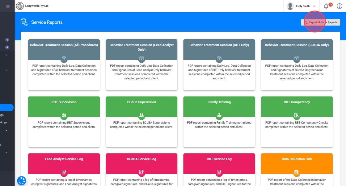 10. In the "Service Reports" window, locate the "Export Multiple Reports" button in the top right corner and click it.