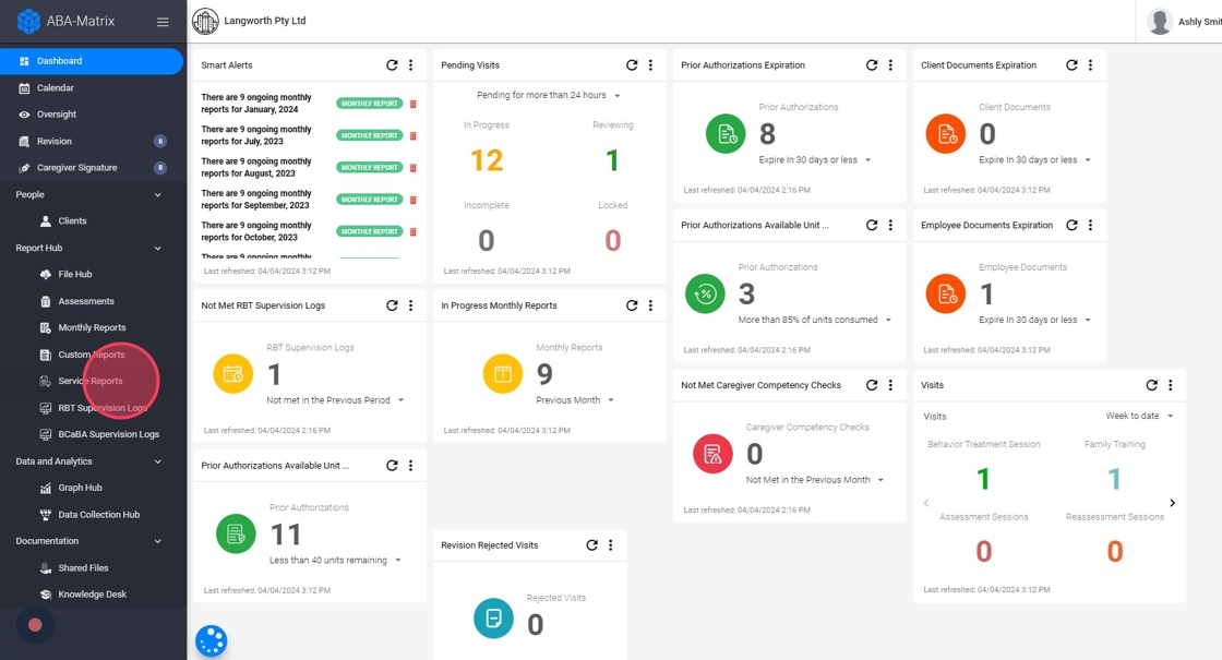 1. From your account, go to the menu on the left side of your screen and choose the "Service Reports" option.