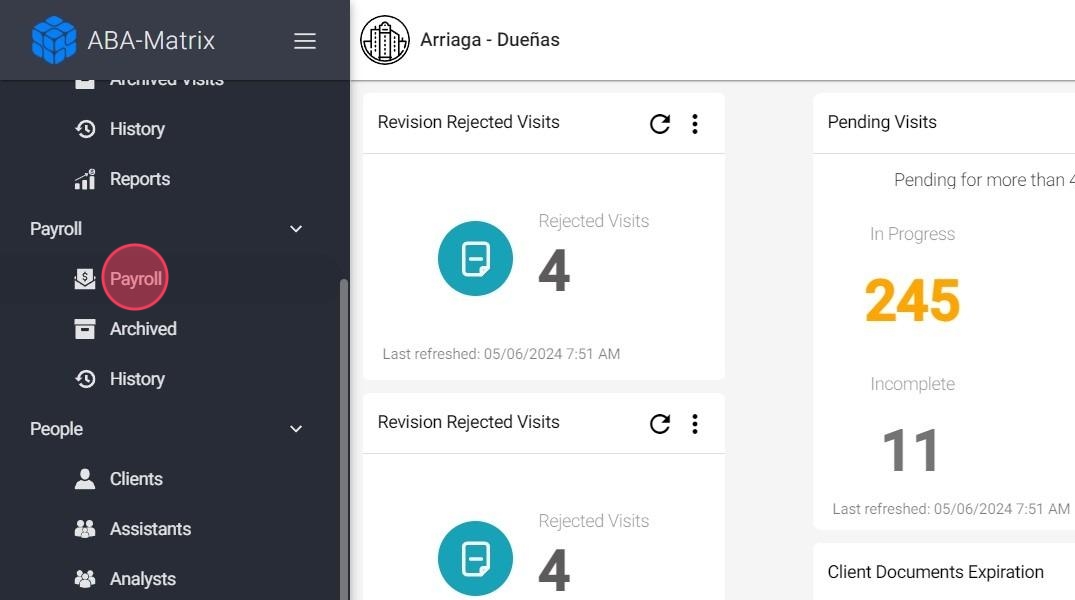 1. Para configurar y ejecutar un payroll, desde una cuenta de administración vaya a la vista de Payroll: