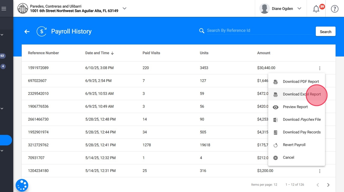 17. En History puedes ver un registro de todas las nóminas que has ejecutado en la agencia. Desde esta vista puedes descargar el informe y los registros de pago, así como revertir la última nómina.