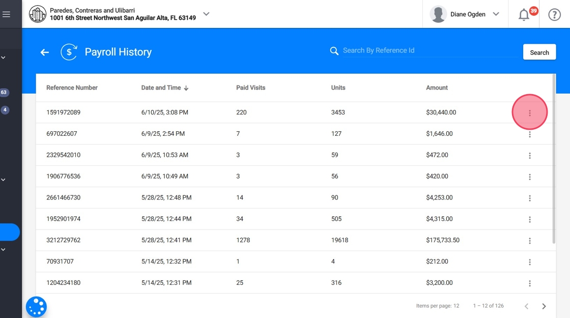 20. En el lado derecho de la entrada del Payroll seleccionado, busca el ícono de tres puntos (⋮).