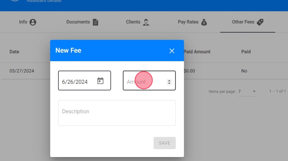 4. Save: Haga clic en "SAVE" para agregar el fee al perfil del empleado.