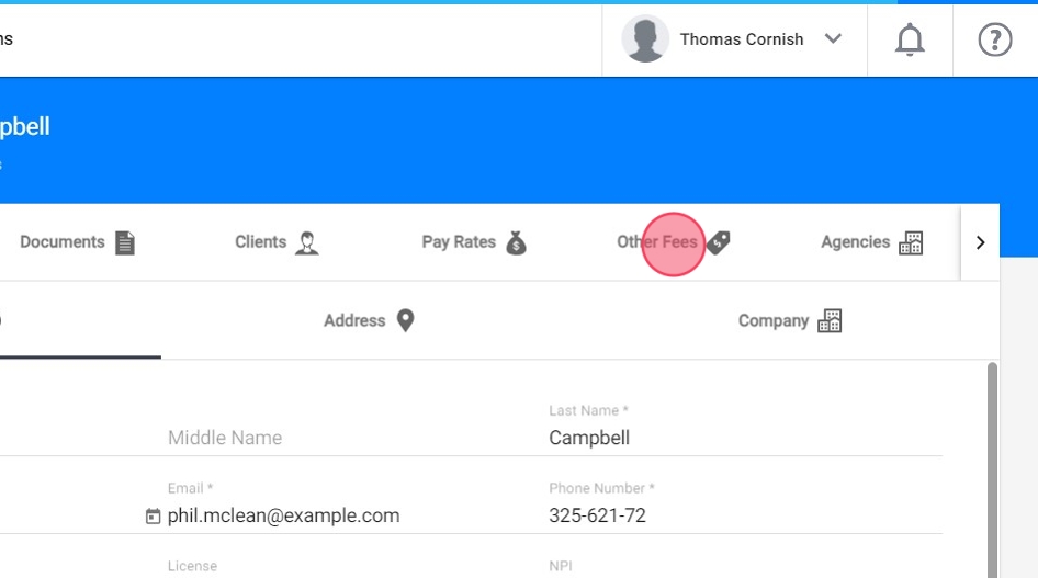 Navigate to the profile of the employee you want to pay the additional fee to.