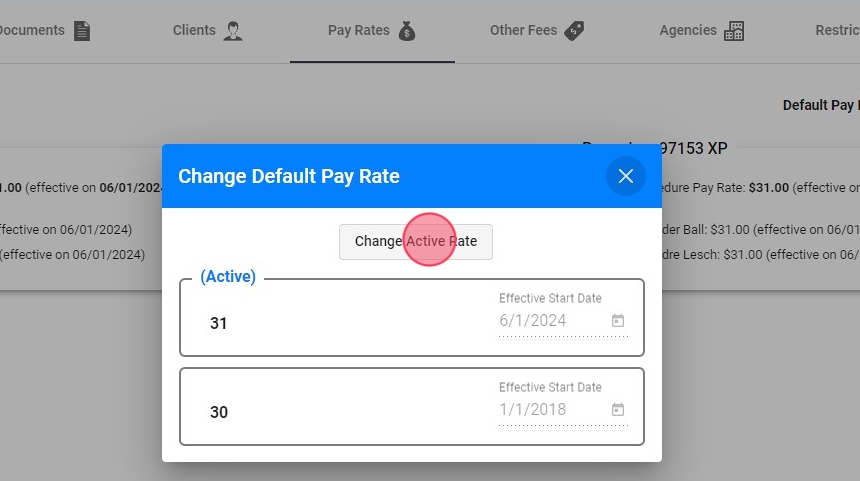 1. To change the default rate access the employee profile and select the "Pay Rates" tab