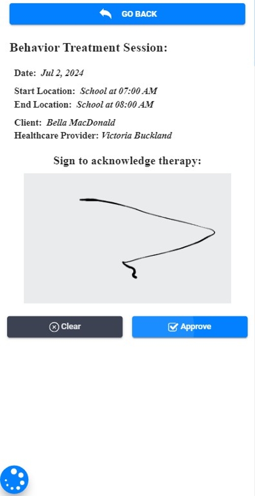 5. You can give the phone to the caregiver so they can sign the sesion. Click "Approve" to save the signature