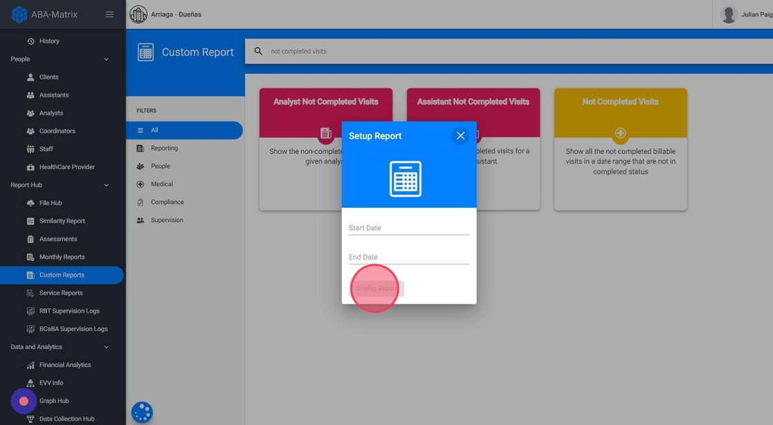 2. Debe verificar que no haya visitas pendientes con el cliente. Puedes usar este custom report para encontrar visitas no completadas dentro de un período de tiempo: