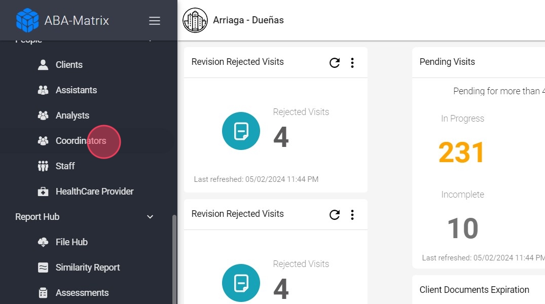 1. Press the “coordinator” button, located in the navigation bar on the left side of your monitor. You can see it in the image.