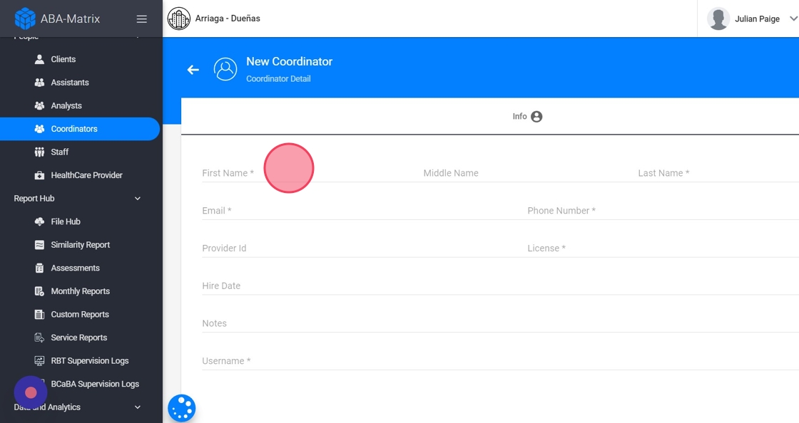 7. Now you need to access the account and assign the RBTs to which the coordinator will sign the Supervision records.