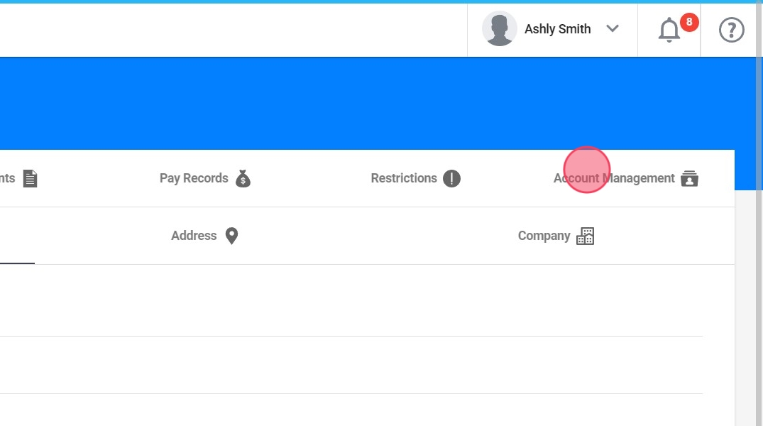 4. Entrará en su perfil personal. Diríjase a la opción que se encuentra en la parte superior derecha de la pantalla identificado con el nombre "Account Management".