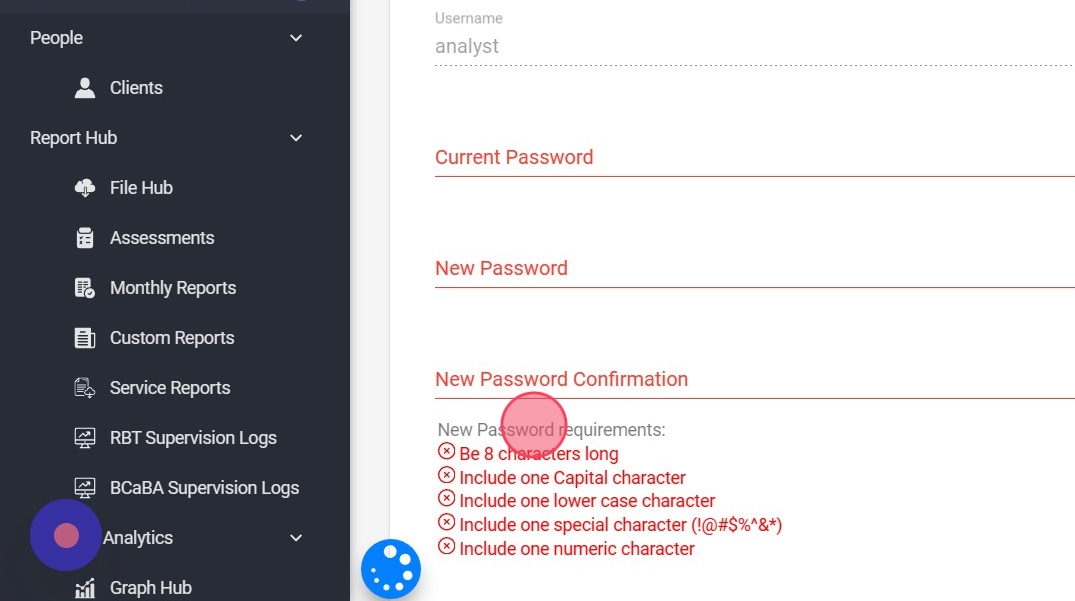You will receive a notification at the top right of the green screen when the password has been successfully changed. In the event that the notification is red, the program will indicate the error committed.