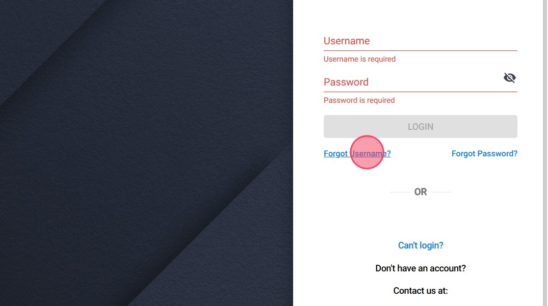 2. Una vez en la página de inicio, haga clic en el enlace de nombre de usuario olvidado ("Forgot Username?")