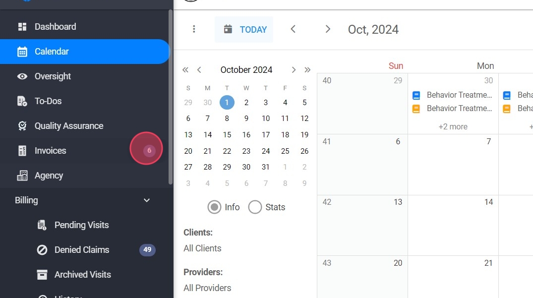 - An alert icon with the number of pending invoices will appear next to the Invoices tab, indicating how many payments are pending.