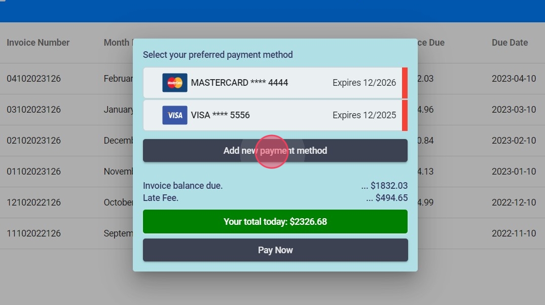 - You will see a button labeled “Add new Payment Method.” Click on this.