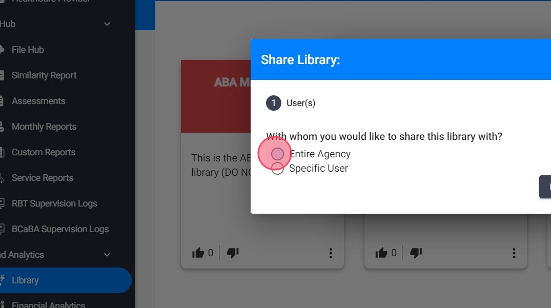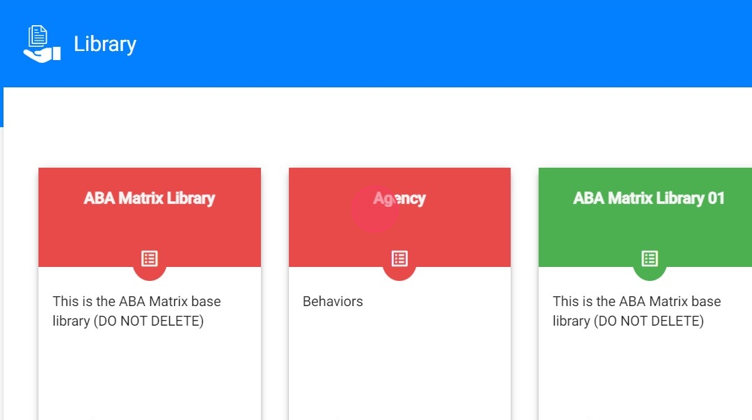 Please note that users will have access to all Libraries they have created or that have been shared with them by the agency, along with the ABA Matrix libraries.