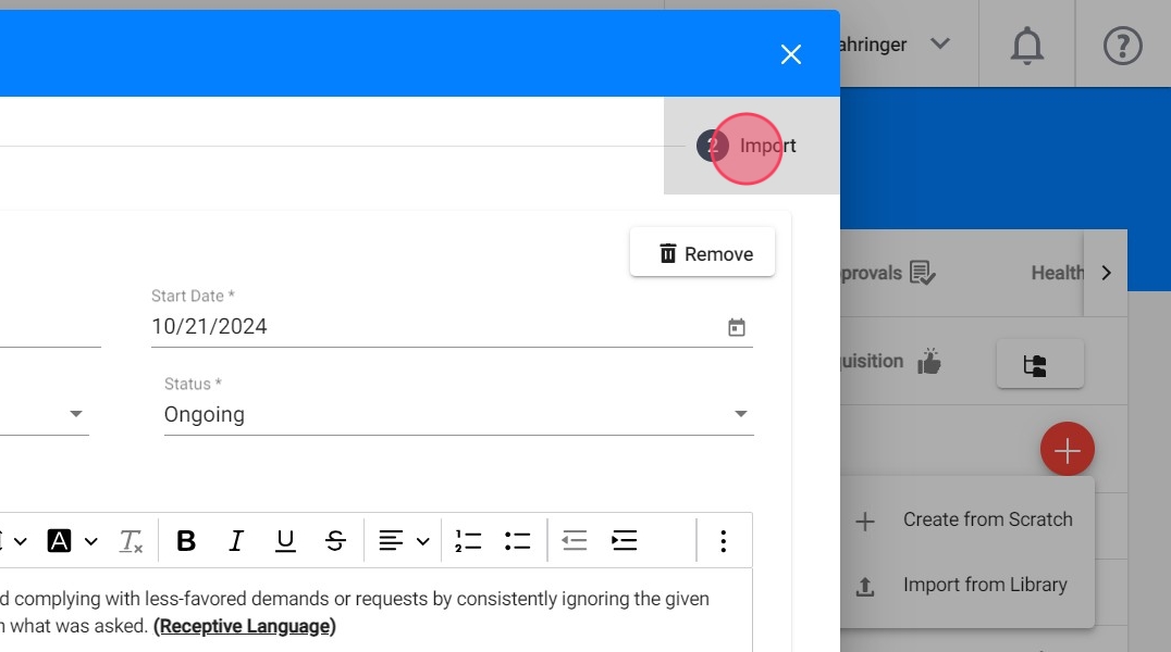 This will allow users to easily browse through pre-existing libraries, select relevant behaviors or programs, and import them into a client’s profile for further customization.