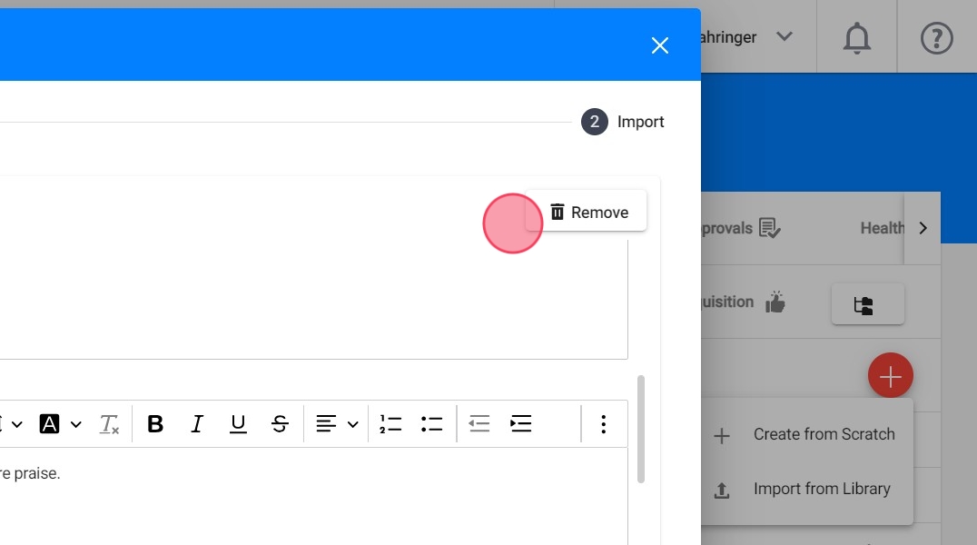 32. After selecting the behaviors or programs, the next step is the Import process, where users can review and customize the content they’ve chosen.