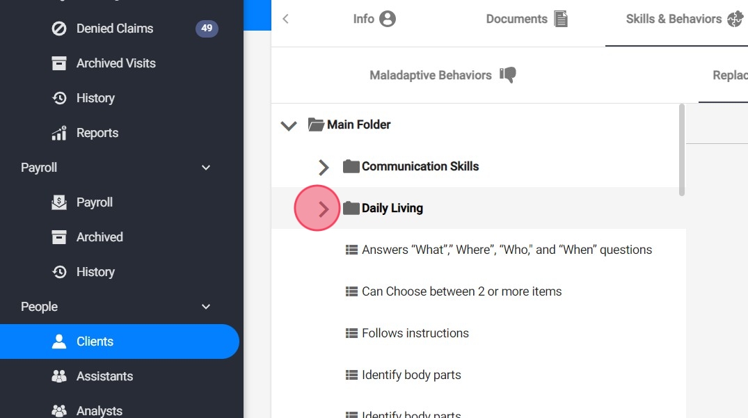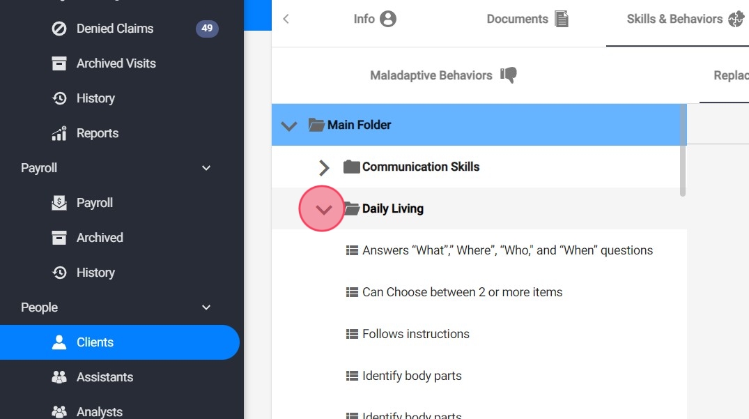 With our new folder creation feature, you can effectively organize behaviors and skills into specific domains and subdomains. This organizational structure simplifies navigation, enhances clarity, and improves the overall management of your data. Whether you're working with individual clients or handling multiple cases, this feature will help you keep everything in order.