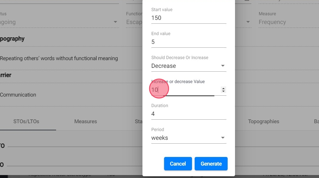 2. En la sección de STOs, podrás generar automáticamente objetivos a corto plazo (STOs) adaptados al cliente.