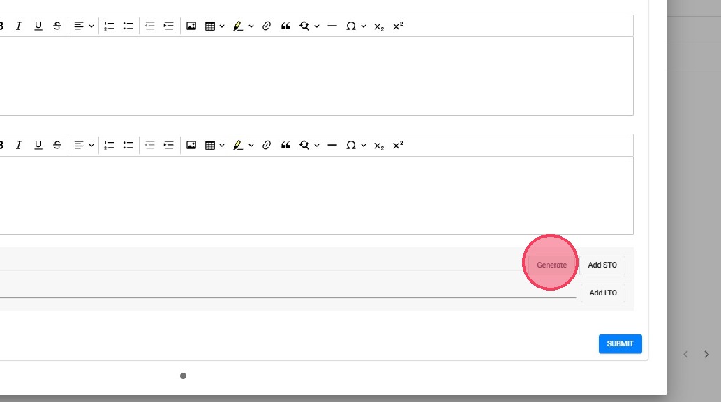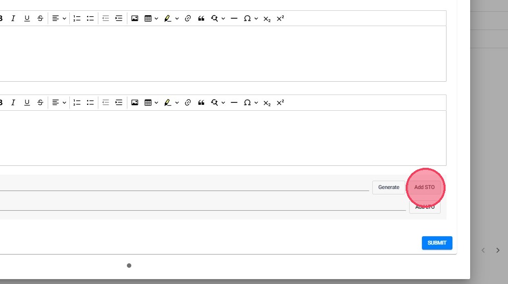 13. Si es necesario, puede editar manualmente la redacción del STO de ejemplo. Una vez que se realicen cambios, aparecerá la opción Re-generate STOs. Haga clic en esta opción para actualizar los STOs con sus modificaciones.