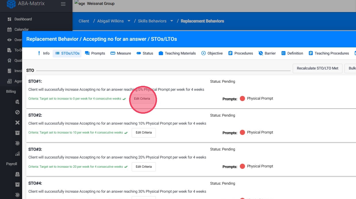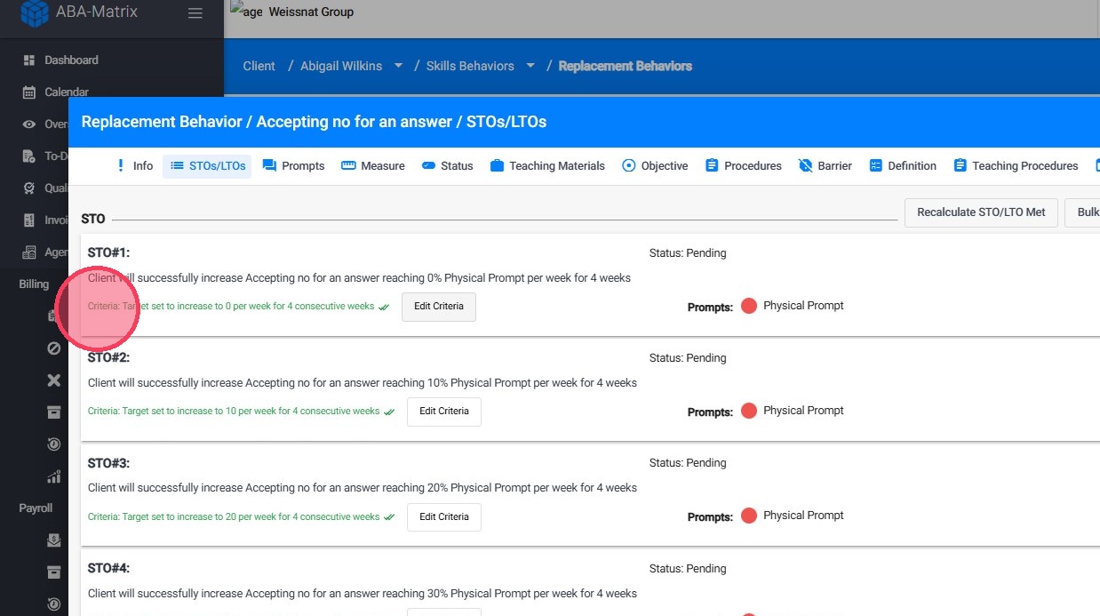 Esta guía es esencial para quienes buscan optimizar la creación y seguimiento de Objetivos a Corto Plazo (STOs) en ABA Matrix. Proporciona instrucciones detalladas sobre cómo generar automáticamente STOs adaptados a las necesidades de los clientes, así como herramientas para gestionar y rastrear su progreso de manera eficiente. Además, incluye opciones para personalizar y editar objetivos, asegurando que se ajusten a los criterios específicos de cada cliente. Con esta guía, los profesionales pueden mejorar la efectividad de su trabajo y el seguimiento del progreso de sus clientes.