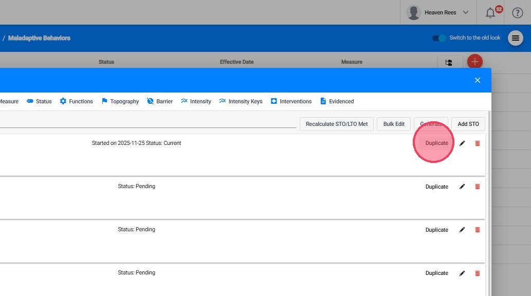 Puede duplicar un STO existente si es necesario, lo que facilita modificar la información en lugar de ingresarla desde cero.