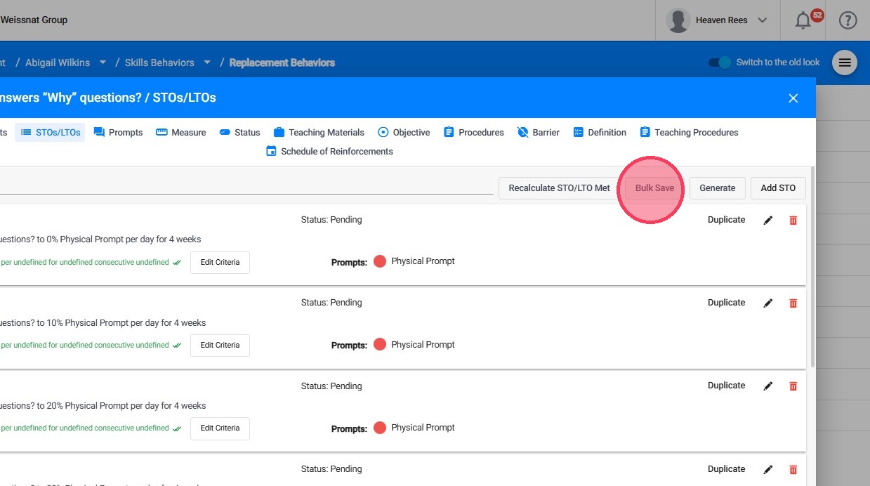 27. Una vez que se hayan realizado todas las actualizaciones necesarias, haga clic en Bulk Save para aplicar y guardar todos los cambios en una sola acción.