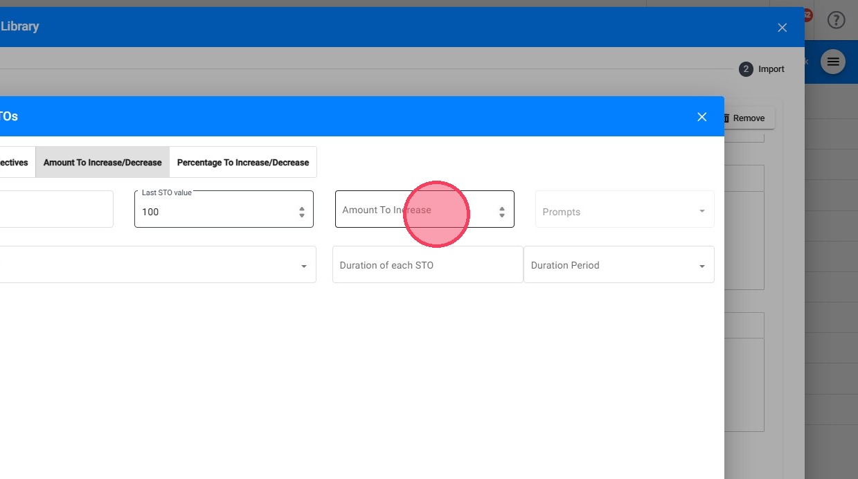- Amount To Increase/Decrease: Includes the amount to increase or amount to decrease field, enabling STO generation by increasing or decreasing values by a fixed amount between objectives (e.g., increase by 10).