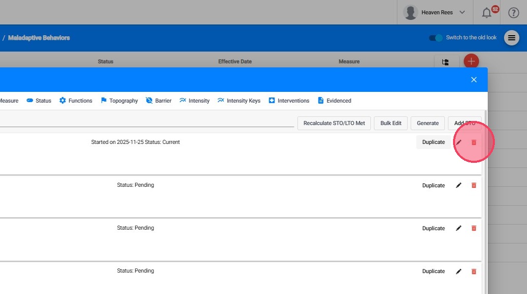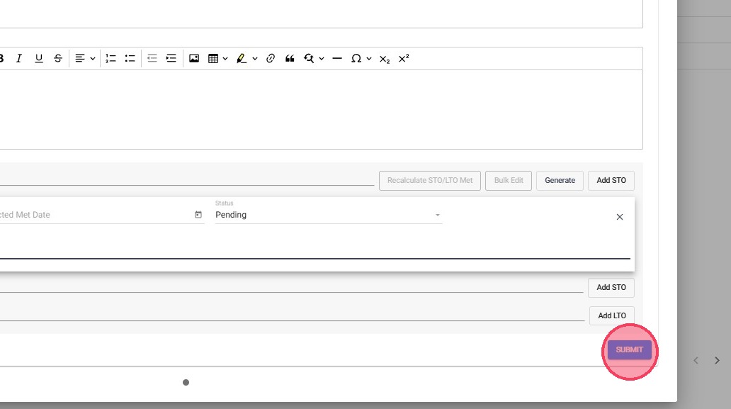 Esta opción permite a los usuarios recalcular instantáneamente todos los STOs y LTOs. Al seleccionarla, el sistema revisa los datos recopilados y aplica los criterios de cada objetivo para determinar si debe marcarse como met. Esto actualiza: