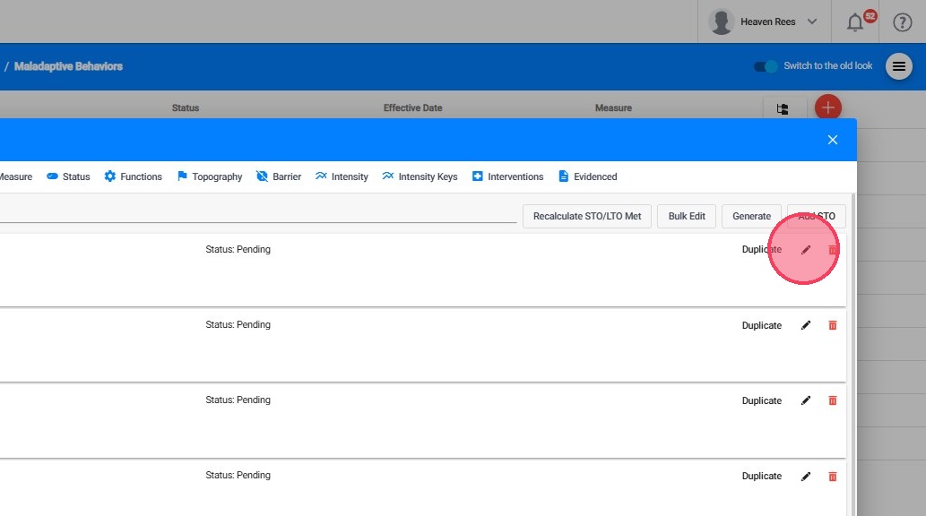 Si desea editar solo un STO, haga clic en el ícono Edit (lápiz).