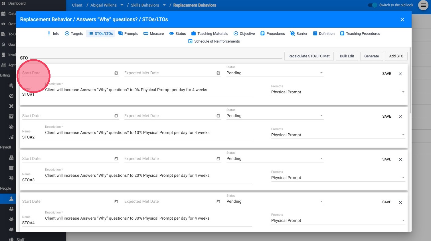Si su agencia ha habilitado la configuración para marcar automáticamente los STOs como met, el sistema marcará el STO como met con la fecha determinada y avanzará al siguiente STO.