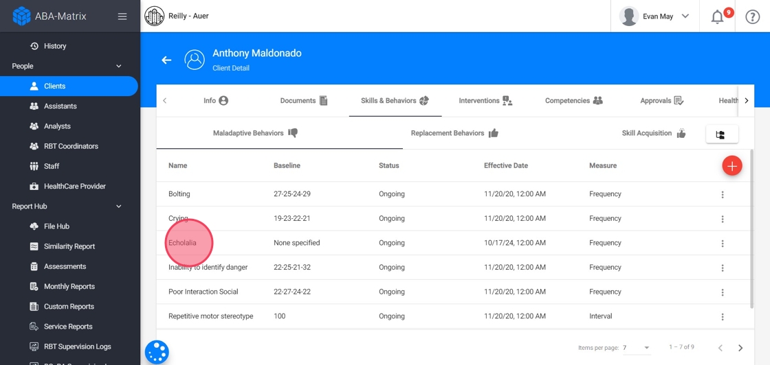 1. Within the client’s profile, locate the section Skills and Behaviors
