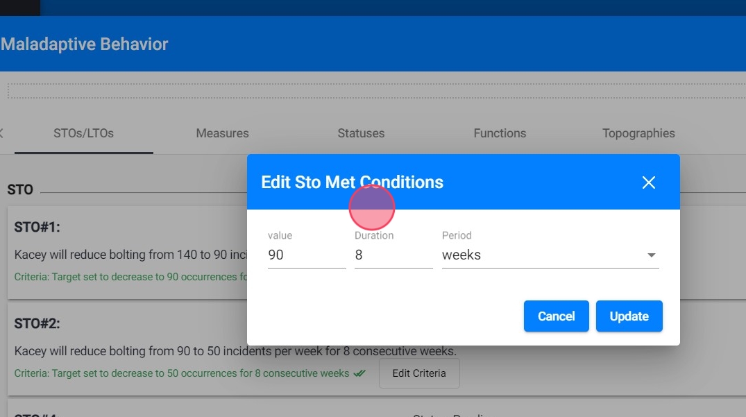- Value: The system checks if the behavior or skill has reached the desired end value (increase or decrease) based on the STO.