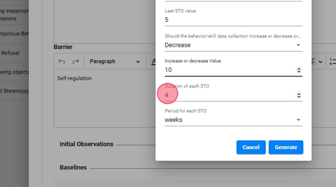 18. - Valores de inicio y fin: Establezca los valores iniciales y objetivo para el STO (por ejemplo, comenzar en 2 y alcanzar 10).