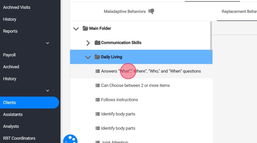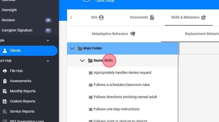 Cómo agregar comportamientos maladaptativos, reemplazos y habilidades a los perfiles de los clientes.