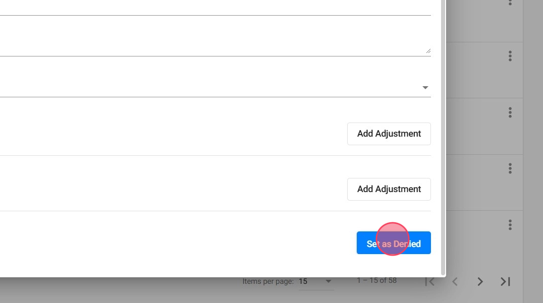 Verify the information entered and save the updates to reflect the claim's denial status.