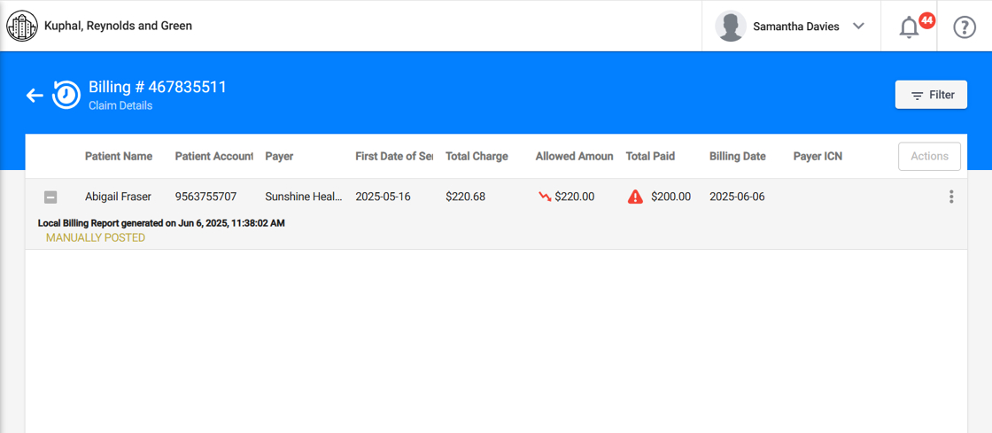 - If you use local billing, the claim will be resubmitted locally and can be found in the Billing History section.