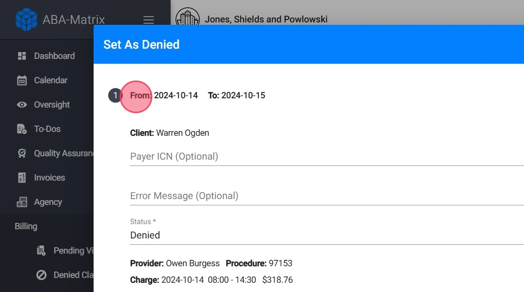 12. Seleccionar Set Claims as Denied