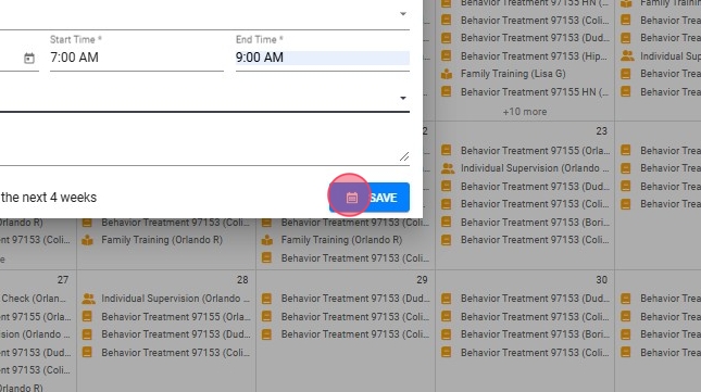 Once the setting is activated, therapists can schedule non-billable events in the calendar.