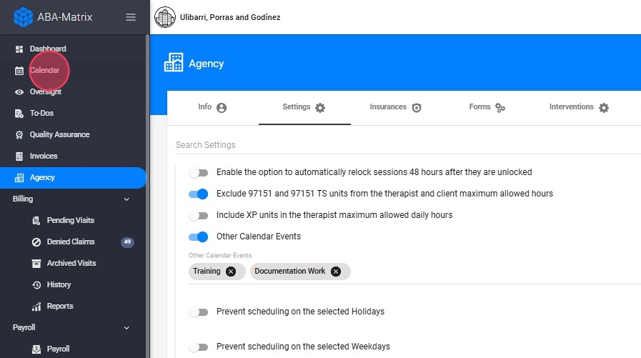 To allow your therapists to schedule "Other" events, you first need to enable the Other Calendar Events setting at the agency level.