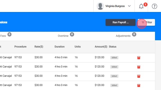 16. Filter by a specific therapist: On the platform, you can filter events by therapist, allowing you to view information for a specific therapist.