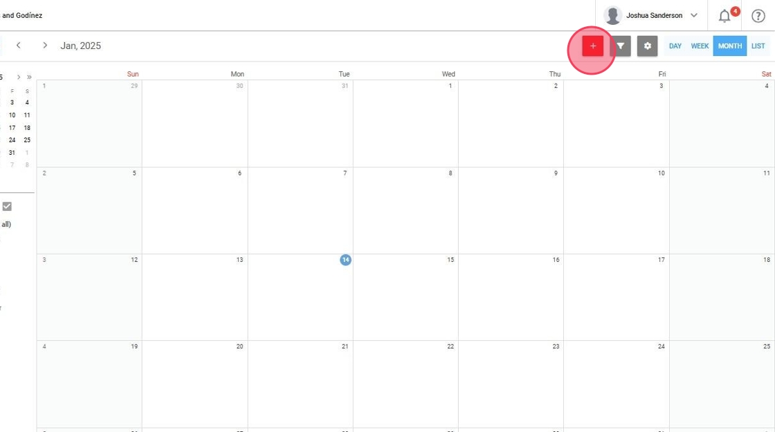 2. Haga clic en el botón "+" (rojo) ubicado en la esquina superior derecha del calendario.