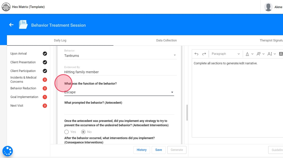 ABA Matrix offers a structured and efficient way to document client session details. The session note is divided into three main sections to support a comprehensive and organized workflow: