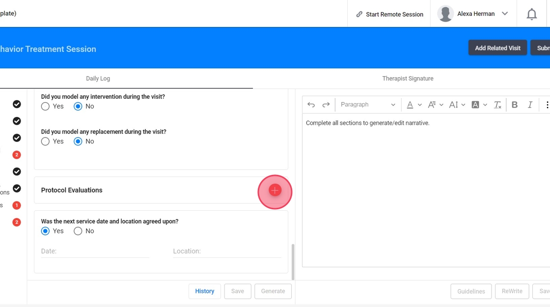 This guide is for analysts documenting behavior treatment sessions with protocol evaluations. It also includes an overview of what information analysts can prepare to be linked to the RBT’s version of the note.