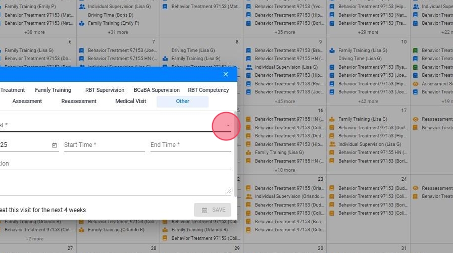 Una vez que se activa la configuración, los terapeutas podrán programar eventos no facturables en el calendario.